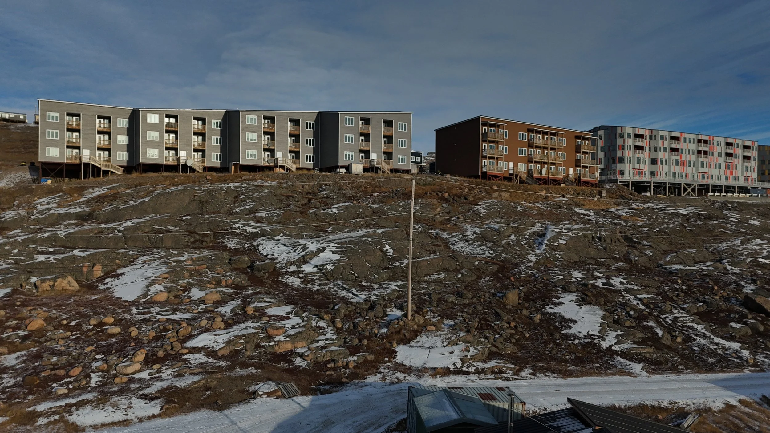 Lot grading refers to the shaping of land to direct water runoff away from structures and prevent flooding. Snow melt can be significant In Nunavut and this process is complicated by permafrost, which affects soil stability and drainage patterns. In most cases, the building is required to be elevated from the ground surface as to ensure the heat from the building does not disturb the permafrost layer. This creates challenges to ensure snow melt and runoff do not pool or affect the foundation systems supporting the building.